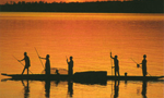 Motorized canoing for Biwar laut, Amandasep, and overnight at a longhouse. In